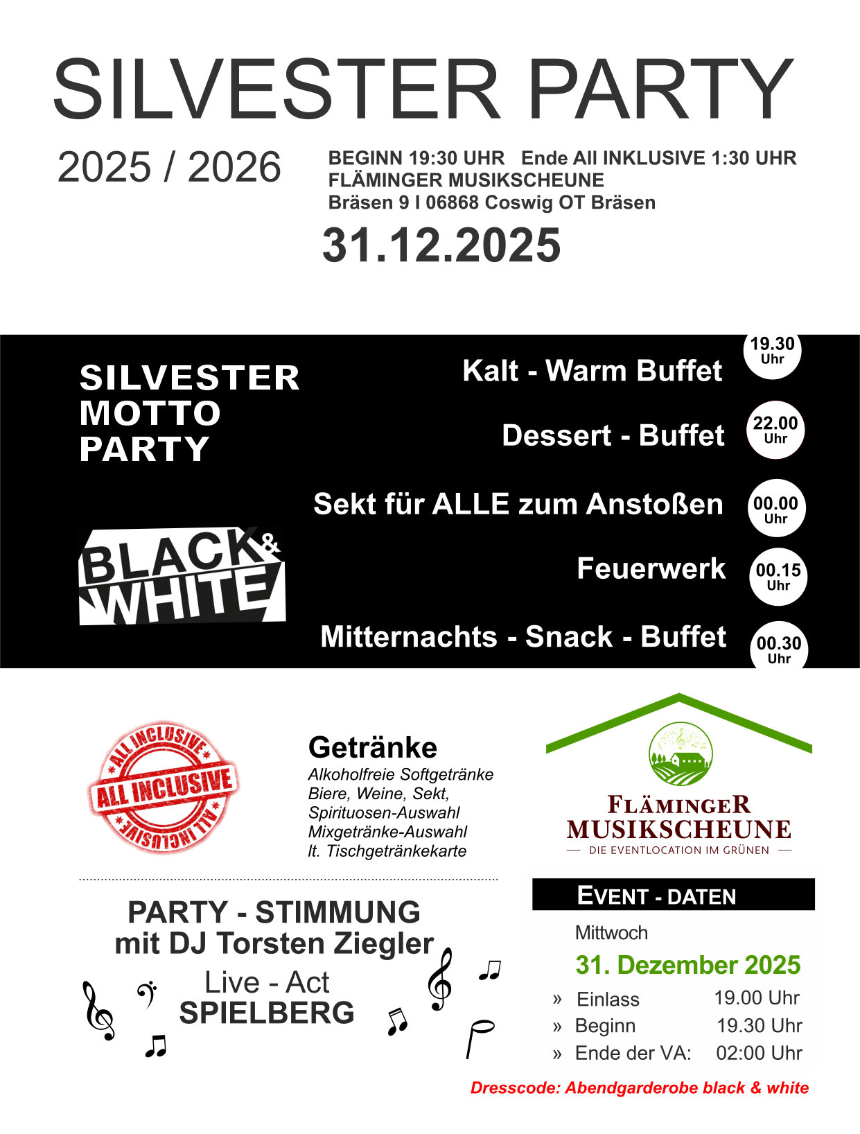 SILVESTERPARTY Welcome 2026 Black & White Ausverkauft